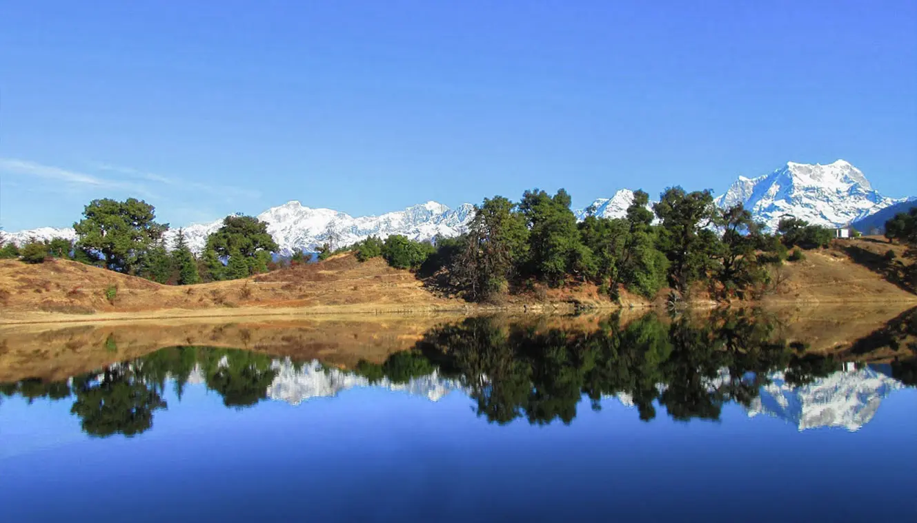 Begin your adventure with a 3 km trek from Sari to Deoriatal, ascending 400 m (1,300 ft) in 1-2 hours along a picturesque trail framed by pine and oak forests. Upon reaching Deoriatal, set up camp by the stunning alpine lake, where the majestic Garhwal Himalayas rise in the background. Enjoy a hot lunch before exploring the area, including a short stroll to the lake for captivating views of Mt. Chaukhamba reflecting on the water. This serene spot is ideal for birdwatching and acclimatizing, so be sure to carry eco bags for any litter you may find!
